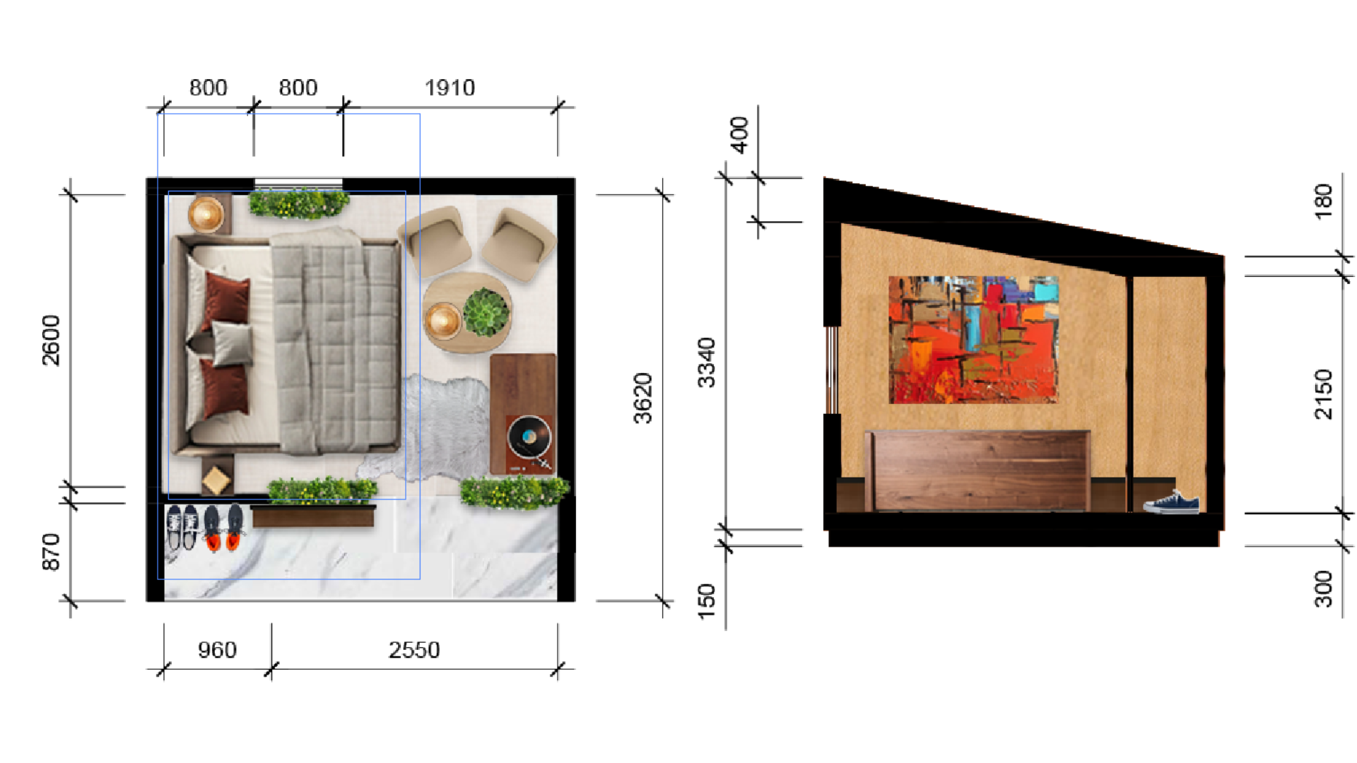 Measurement sketches using AutoCAD (Side and top view)